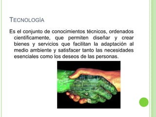 La tecnología se refiere al conjunto de conocimientos técnicos que permiten crear bienes y servicios para satisfacer las necesidades humanas. Las tecnologías de información y comunicación (TIC) como la televisión, el teléfono móvil y el ordenador ayudan a transmitir mensajes e influir en las opiniones públicas. El uso generalizado de las TIC en una población puede reducir la brecha digital al aumentar el número de usuarios y facilitar el desarrollo social y económico.