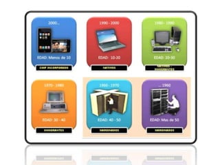 El documento discute el impacto de las nuevas tecnologías en la educación. Señala que los estudiantes nativos digitales tienen habilidades tecnológicas que superan a sus profesores y que esperan una educación más interactiva y personalizada que incorpore herramientas digitales. Finalmente, argumenta que los educadores deben guiar a los estudiantes a utilizar críticamente la tecnología y Internet para desarrollar su máximo potencial.