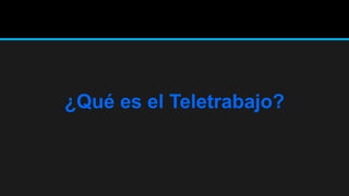 El teletrabajo implica trabajar de forma remota utilizando internet y tecnologías de la información. Ofrece beneficios como vivir en el país de origen mientras se trabaja para el mundo entero, ganando más que de forma local. No tiene límites de edad, género u otros factores. Existen dos tipos principales: independiente o por cuenta propia; y relacionado a una empresa. El teletrabajo genera interés en muchos países y personas de todo tipo pueden dedicarse a él.