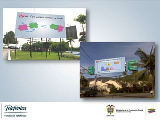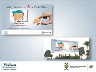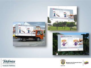 Este documento presenta la campaña "Ármales un mundo mejor" para sensibilizar a la comunidad sobre el problema del trabajo infantil en Colombia. La campaña será implementada en 3 etapas por la Fundación Telefónica y el Ministerio de Protección Social. La primera etapa utilizará medios como redes sociales, vallas publicitarias y televisión para generar conciencia sobre los derechos de los niños. La segunda etapa, de 4 meses, invitará a la comunidad a unirse en contra del trabajo infantil a través de la página web. También