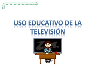 Este documento clasifica la televisión educativa en tres categorías: escolar, cultural y educativa. La televisión escolar se usa formalmente en la enseñanza primaria hasta la universidad siguiendo principios didácticos y teorías de aprendizaje. La televisión cultural tiene fines de divulgación, entretenimiento y comercialización a través de reportajes y noticieros. La televisión educativa es no formal y se enfoca en series, programación continua, enseñanza de conocimientos, actitudes y valores.