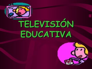 El documento discute el impacto de la televisión en los niños y la importancia de la televisión educativa. Explica que existen tres tipos de televisión: comercial, cultural y educativa. La televisión educativa se genera por instituciones educativas y se usa como herramienta de enseñanza, dirigida a públicos académicos específicos. También ofrece consejos para los padres sobre cómo supervisar el consumo de televisión de los niños y los riesgos de la violencia y programación no apta en la televisión.