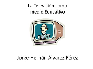 Este documento discute el potencial educativo de la televisión. Se definen tres categorías de televisión educativa: cultural, educativa y escolar. La televisión educativa debe considerar factores como la edad de los espectadores, sus conocimientos previos y los objetivos del contenido. Se requiere un equipo de expertos en lenguaje televisivo y diseño didáctico para crear programas efectivos. El profesor también desempeña un papel clave al preparar, monitorear y evaluar a los estudiantes durante y después de la transmisión.