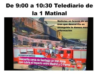 El documento presenta la programación de televisión de JUANCHOPANZA para el día, incluyendo el Telediario de la 1 de 9:00 a 10:30, la Ruleta de las suerte de 10:30 a 14:00 con un bote de 150.000 euros, Los Simpsons de 14:00 a 15:00, los deportes de 15:00 a 16:30, Castle y Transformers de 16:30 a 20:00, las noticias de la 1 de 20:00 a 21:30 con noticias desde Murcia, y un partido de fútbol en directo de RM vs Osas