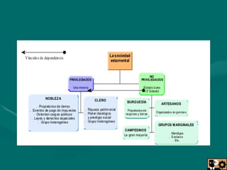 El documento describe las características del Antiguo Régimen en Europa entre los siglos XVII y XVIII, incluyendo una demografía antigua y frágil, una economía agraria, una estructura social estamental y un gobierno absolutista. También resume las ideas de la Ilustración que promovían el uso de la razón y los derechos individuales, así como los pensadores clave como Locke, Montesquieu, Voltaire y Rousseau.