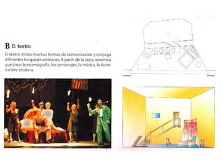 Este documento presenta una introducción al lenguaje visual y plástico. Explora diferentes temas como la interpretación de obras de arte por otros artistas, la interacción entre lenguajes visuales y otras artes como la música y la literatura, la fotografía, el diseño, las nuevas tecnologías y el dibujo técnico. Incluye ejemplos de obras y artistas como Picasso, Miró, Warhol, Leger, Van Gogh y cómo otros como Bacon, Lichtenstein y el Equipo Crónica interpretaron sus trabajos.