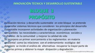 El documento trata sobre la necesidad de desarrollar sistemas técnicos que incorporen principios de desarrollo sostenible y consideren las necesidades sociales, económicas y culturales de las comunidades. También aborda la importancia de minimizar el impacto ambiental de las actividades humanas y los proyectos tecnológicos a través de estudios previos, así como la necesidad de que todos los actores involucrados armonicen sus intereses para lograr un desarrollo industrial sustentable.