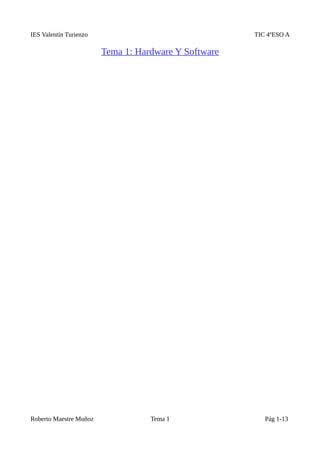 Este documento describe los principales componentes de hardware de un ordenador. Explica que la placa base es el elemento soporte que conecta el microprocesador, la memoria RAM, los periféricos y la fuente de alimentación. Describe los diferentes tipos de ranuras y conectores de la placa base y sus funciones. También explica el funcionamiento y características del microprocesador, la memoria RAM, el disco duro y los periféricos de entrada, salida y entrada/salida.
