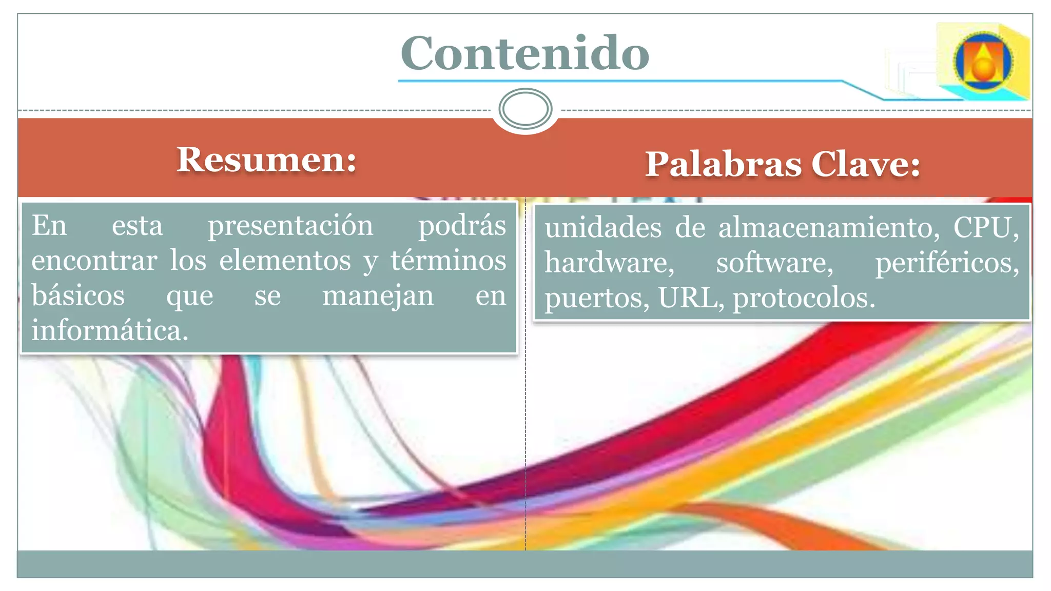 Este documento presenta conceptos básicos de informática como unidades de almacenamiento, CPU, hardware, software, periféricos, puertos, URL y protocolos. Explica las unidades de medida de información como byte, kilobyte, megabyte, etc. Define informática como la ciencia de la información automatizada. Describe los componentes principales de una computadora como la unidad central de proceso, unidad de memoria y unidades de entrada y salida.
