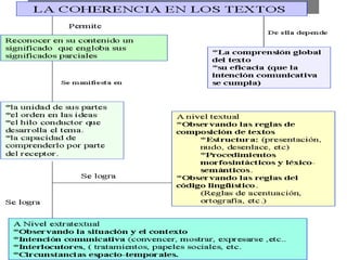 Coherencia La coherenciahace referencia a cómo se ofrece la información: El mensaje o la información que los textos contienen se estructura de una determinada forma. La coherencia establece cuál es la información pertinente y cómo se ha de ofrecer.