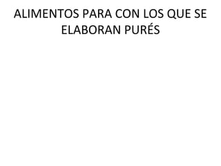 El documento lista diferentes categorías de objetos y elementos, incluyendo alimentos para purés como calabacín y patatas, prendas de vestir como botas de agua y jersey, objetos cuadrados como bandeja y reloj, útiles de aseo como cepillo de dientes y jabón líquido, y números del 1 al 5.