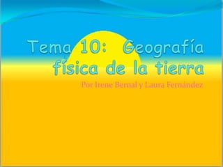 El documento describe los rasgos generales de la Tierra, incluyendo su relieve, climas e hidrografía. Explica que la Tierra tiene cadenas montañosas, llanuras, mesetas y depresiones. Sus climas van desde los cálidos a los fríos pasando por los templados. Sus ríos más largos son el Nilo, Amazonas, Yangtsé, Obi y Huang He, y sus ríos con mayor caudal son el Amazonas, Congo, Nilo y Misisipi.