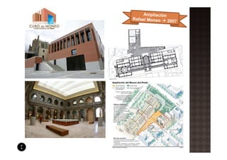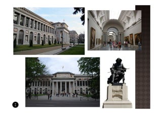 El documento resume la vida y obras de Juan de Villanueva, arquitecto español del neoclasicismo. Detalla sus principales proyectos civiles y religiosos como el Museo del Prado, el Observatorio Astronómico de Madrid y el Oratorio del Caballero de Gracia. También explica su influencia por la arquitectura griega y su uso de formas geométricas como el cuadrado y el cubo.