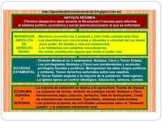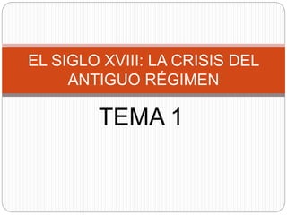 El siglo XVIII en Europa fue un período de transición entre el Antiguo Régimen y las revoluciones liberales. Por un lado, se mantuvieron características del Antiguo Régimen como la monarquía absoluta, la sociedad estamental y la agricultura señorial. Por otro lado, el crecimiento demográfico y económico así como la Ilustración prepararon el camino para las revoluciones. La sociedad estaba dividida en privilegiados (nobleza y clero) y no privilegiados, y la burguesía creciente aspiraba