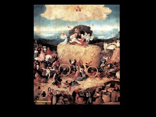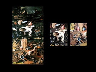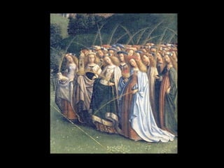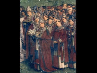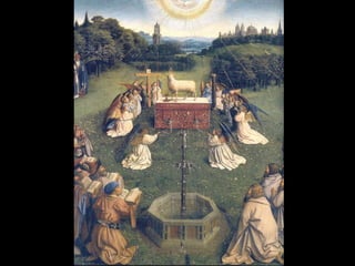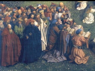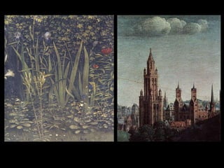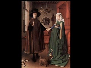 Este documento resume la pintura de los primitivos flamencos del siglo XV. Explica la sociedad y economía de Flandes en ese periodo y las características del estilo flamenco como el naturalismo, el uso de la perspectiva y el interés por los detalles cotidianos. Luego describe las obras y estilos de los principales pintores flamencos como los hermanos Van Eyck, Rogier Van der Weyden y El Bosco. Finalmente, menciona brevemente a algunos pintores góticos españoles como Jaume Huguet, Bart
