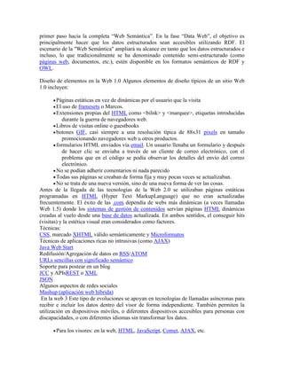 La evolución de la Web se ha dividido en tres etapas: Web 1.0 (1991-2003) con páginas estáticas y limitadas, Web 2.0 (2004-presente) con contenido generado por usuarios y redes sociales, y Web 3.0 que se enfoca en datos semánticos y la inteligencia artificial para procesar grandes cantidades de información de manera más efectiva. Cada nueva etapa ha traído mayores capacidades interactivas y colaborativas a la experiencia en línea.