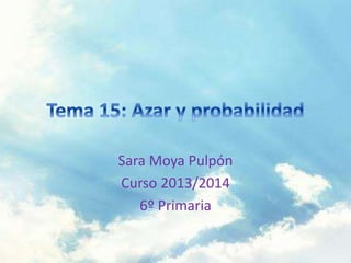 Este documento presenta información sobre la probabilidad y los sucesos aleatorios. Explica las clases de sucesos como sucesos seguros, posibles e imposibles. También describe cómo calcular la probabilidad de un suceso usando fracciones y cómo estimar la probabilidad a partir de datos experimentales. Incluye ejemplos de experiencias aleatorias y cálculos de probabilidad.