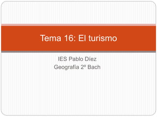 Este documento describe la importancia económica del turismo en España. El turismo es una de las actividades económicas más importantes, aportando el 11% del PIB y dando empleo al 12% de la población activa. Además, España tiene un gran potencial turístico gracias a su variedad de destinos naturales y culturales. Factores como la mejora de las infraestructuras y la ubicación geográfica han beneficiado el desarrollo del turismo en el país.
