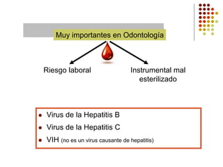 Este documento resume las principales hepatitis víricas, incluyendo los virus de la Hepatitis A, B, C, D y E. Describe la transmisión, síntomas, diagnóstico y prevención de cada tipo de hepatitis. La Hepatitis B y C son particularmente importantes debido a su potencial de convertirse en infecciones crónicas.