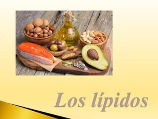 Los lípidos son biomoléculas orgánicas formadas por carbono, hidrógeno y oxígeno, aunque también pueden contener fósforo y nitrógeno. Son muy heterogéneas pero comparten la característica de ser insolubles en agua y solubles en disolventes orgánicos no polares. Cumplen funciones estructurales, energéticas y de protección en los seres vivos.