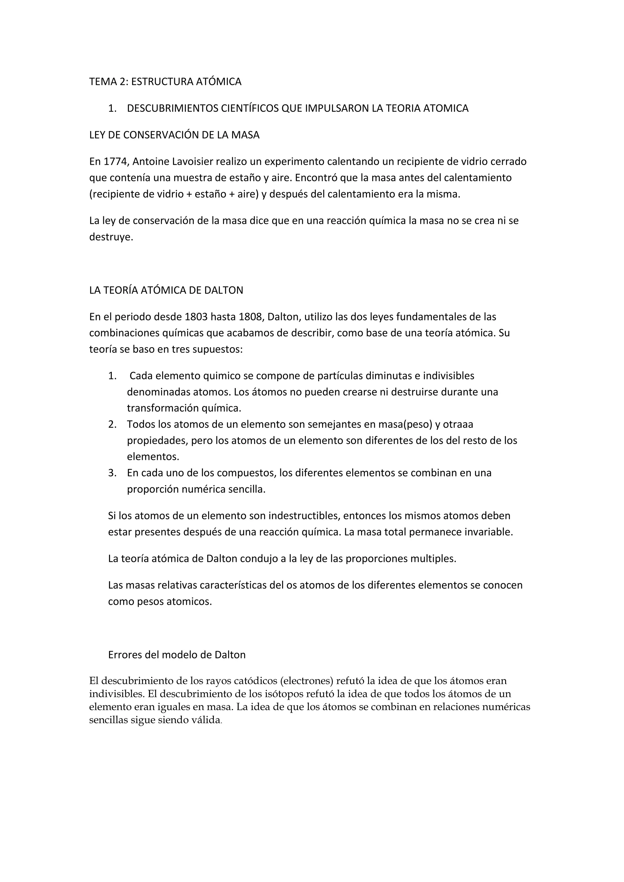 El documento describe la evolución del modelo atómico desde Dalton hasta la mecánica cuántica. Inicialmente, Dalton propuso que los átomos eran indivisibles y se combinaban en proporciones numéricas simples. Luego, Rutherford descubrió el núcleo atómico y que los átomos estaban compuestos principalmente de espacio vacío. Más adelante, Bohr aplicó la hipótesis cuántica de Planck y propuso que los electrones orbitaban el núcleo en órbitas permitidas con energías