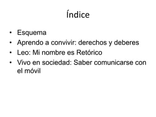 Este documento presenta una unidad sobre derechos y deberes. La unidad incluye secciones sobre derechos humanos, derechos de los niños, una historia sobre comunicación y el uso apropiado de teléfonos móviles. El documento también describe actividades de aprendizaje y repaso relacionadas con la comprensión de los derechos y deberes de los ciudadanos.