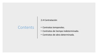 Este documento describe los diferentes tipos de contratos laborales en México según la Ley Federal del Trabajo, incluyendo contratos por tiempo determinado, contratos para obra determinada y contratos por tiempo indeterminado. También explica las condiciones de trabajo como jornada laboral, salario, descansos legales y causas para despidos justificados. Resalta la importancia de que los patrones conozcan y apliquen correctamente las leyes laborales para evitar sanciones o demandas.
