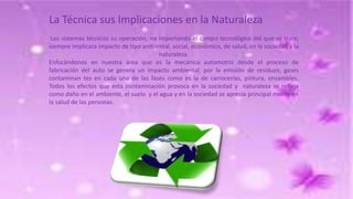Este documento trata sobre la relación entre la técnica y la sociedad del riesgo. Explica que el desarrollo científico-tecnológico ha traído tanto resultados positivos como negativos, creando una sociedad de riesgo. También introduce el principio precautorio, el cual propone medidas preventivas para proteger a la sociedad de posibles accidentes o situaciones de riesgo debido al progreso técnico. Finalmente, discute la importancia de la seguridad y salud en el trabajo para prevenir riesgos laborales y crear un