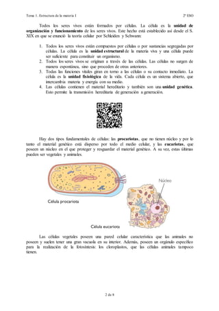 Este documento describe las funciones vitales de los seres vivos, incluyendo la nutrición, relación y reproducción. Explica que la nutrición puede ser autótrofa, como la fotosíntesis en plantas, o heterótrofa. La función de relación permite a los organismos interactuar con el medio, y en animales involucra los sentidos y sistema nervioso.