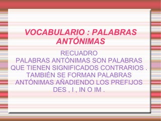 El documento presenta varios temas brevemente, incluyendo cómo los leones ven el mundo en blanco y negro y por eso confunden las rayas de las cebras, palabras antónimas y su formación, la tilde en diptongos, los componentes de la oración (sujeto y predicado), los tipos de narrador, y cómo se organizan y presentan las historias en los cómics.