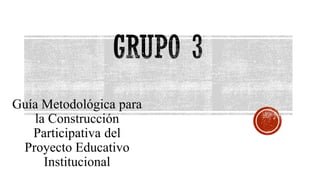El documento presenta la guía metodológica para construir un Proyecto Educativo Institucional de manera participativa. Varias estudiantes exponen sobre diferentes aspectos del PEI como su definición, importancia, implementación y visión/misión. Explican que el PEI es un proceso de reflexión estratégica que planifica acciones a corto y mediano plazo centrado en el estudiante. Además, resaltan que su construcción requiere identificar las necesidades de los alumnos y fijar objetivos educativos de calidad y equ