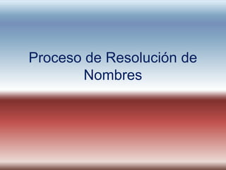 El documento describe el proceso de resolución de nombres de dominio en Internet. Al escribir una dirección URL como "arsys.es", el navegador primero busca la información de DNS locales y luego en servidores DNS superiores hasta encontrar la dirección IP del servidor web deseado. Luego se conecta al servidor web para recibir la página solicitada. También explica el proceso de resolución de nombres NetBIOS para comunicar recursos en una red.