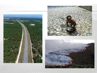 Este documento describe los conceptos fundamentales de ecosistema, biocenosis, biotopo, autorregulación del ecosistema, crecimiento de poblaciones, potencial biótico, resistencia ambiental, estrategias de reproducción r y k, valencia ecológica, estructura y dinámica de comunidades, relaciones interespecíficas como depredación, parasitismo, competencia, y relaciones intraespecíficas. Explica cómo los ecosistemas se autorregulan a través de bucles de realimentación y cómo factores bi