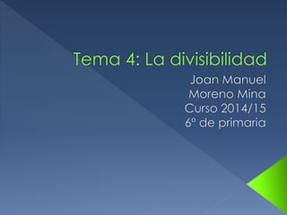 Este documento trata sobre conceptos básicos de divisibilidad y múltiplos de números. Explica que un múltiplo es el resultado de multiplicar un número por otro, y que un número es divisible por otro si la división es exacta. También define el mínimo común múltiplo como el menor múltiplo común de dos o más números, y explica cómo calcularlo. Finalmente, introduce los conceptos de divisores, números primos y compuestos, y criterios de divisibilidad.