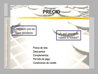 El documento describe el concepto de mercado desde diferentes perspectivas. Define el mercado como la unión de compradores y vendedores que se ponen de acuerdo a través de los precios para intercambiar un producto. Explica que existen diferentes tipos de mercado según los compradores, el grado de competencia o las características del producto. Además, introduce conceptos como la segmentación de mercado y los criterios para realizarla.