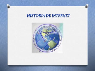El documento describe la historia y evolución de Internet desde sus inicios en la década de 1960 hasta la actualidad. Comenzó como una red militar estadounidense llamada ARPANET que conectaba universidades, y evolucionó para incluir más redes independientes y computadoras a nivel mundial. Ahora es una red global de redes que permite la comunicación y el acceso a la información de forma descentralizada.