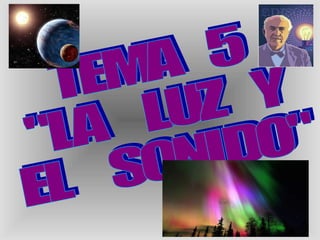 El documento habla sobre la luz y el sonido. Explica que la luz es una forma de energía que nos permite ver y que se propaga a través de ondas. También describe cómo la luz se refleja, absorbe y refracta al entrar en contacto con diferentes materiales. Además, explica que el sonido es otra forma de energía relacionada con las vibraciones, y que se propaga a través de ondas sonoras que pueden reflejarse. Por último, menciona los efectos negativos del ruido y la contaminación acústica en