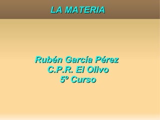 Este documento trata sobre la materia y sus propiedades. Explica que la materia es todo lo que tiene masa y volumen, y describe sus propiedades generales como la masa y el volumen, y sus propiedades específicas como la temperatura y la densidad. También cubre los diferentes estados de la materia, los cambios físicos y químicos que puede experimentar, y las diferentes formas de mezclarse y separarse.