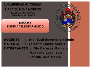 El documento abarca conceptos fundamentales sobre sistemas teleinformáticos, incluyendo su definición, componentes y funciones, así como la comparación entre transmisión en serie y paralelo. Además, se discuten las características de redes LAN y WAN, así como elementos de hardware y software en redes computacionales. Finalmente, menciona la importancia de la conectividad y administración de redes en entornos educativos y profesionales.