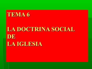 La Doctrina Social de la Iglesia trata sobre la moralidad de las acciones sociales y políticas a la luz de la enseñanza de Jesucristo y el Magisterio de la Iglesia. Sus principios se basan en la dignidad de cada persona y el bien común, y abordan cuestiones actuales como la paz, la justicia económica, los derechos de la familia y el medio ambiente. La DSI ha ido evolucionando a lo largo de la historia para aplicar los evangelios a los desafíos sociales contemporáneos.