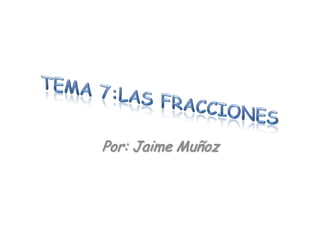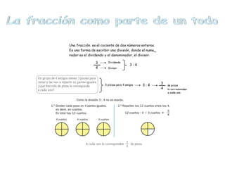 Este documento proporciona recursos educativos sobre fracciones, incluyendo la definición de fracciones como cociente de dos números, fracciones equivalentes, reducción a común denominador, y enlaces a juegos y videos sobre fracciones.