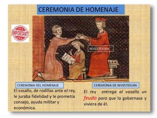 Las invasiones de Europa en los siglos IX y X crearon un clima de inseguridad. Esto llevó a los reyes a apoyarse en la nobleza, entregándoles feudos a cambio de su lealtad y servicios militares. Los nobles, a su vez, acogieron campesinos en sus tierras para ponerlas en cultivo, convirtiéndolos en siervos. De esta manera surgió el sistema feudal que organizó la sociedad y el poder en la Edad Media.