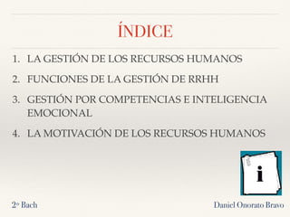 The document discusses the key functions of human resources (HR) management in companies. It covers HR planning and organization, recruitment and selection of personnel, employee training and development, performance evaluation, labor relations, and occupational health and safety. It also examines theories of work motivation like Maslow's hierarchy of needs and Herzberg's two-factor theory. HR management aims to select, develop and motivate the workforce to help companies achieve their objectives.