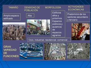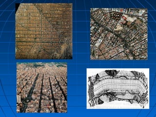 El documento describe varios aspectos del espacio urbano. Explica el concepto de ciudad y los diferentes criterios para definirla. Describe la morfología urbana, incluyendo el emplazamiento, tipos de planos como irregular, radiocéntrico u ortogonal. También cubre las funciones urbanas como la residencial, comercial y de ocio. Por último, analiza la evolución de la morfología urbana en el siglo XX con modelos como la ciudad jardín y la ciudad racionalista.