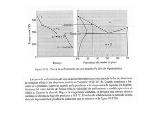 Este documento presenta 10 problemas relacionados con diagramas de fases eutécticos, en particular el diagrama de fases Pb-Sn. Los problemas cubren temas como la solubilidad de fases, la identificación y composición de fases en diferentes temperaturas, y el diseño de aleaciones para aplicaciones específicas basadas en sus propiedades.