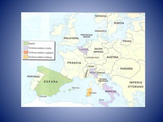 El documento describe la historia dinástica de España desde los Austrias a los Borbones, incluyendo las batallas de Almansa y la Guerra de los Siete Años, así como los reyes Felipe V, Fernando VI, Carlos III e Isabel de Farnesio y su influencia en la familia real y el Palacio de la Granja.