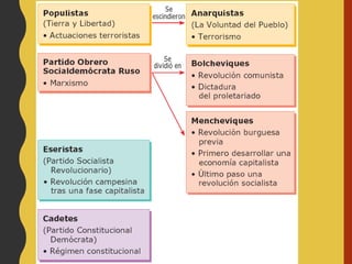 1) La Revolución de Febrero derrocó al zar Nicolás II y estableció un gobierno provisional, pero las continuas crisis llevaron a los bolcheviques al poder.