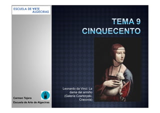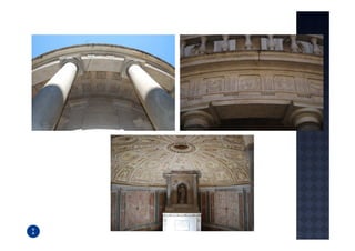 El documento presenta información sobre la vida y obras del pintor renacentista Rafael. Brevemente describe que Rafael nació en Urbino y más tarde trabajó en Florencia y Roma, donde pintó obras maestras para el papa León X como parte de la remodelación de la Basílica de San Pedro. Sus obras incluyen pinturas religiosas como La Transfiguración, La Madonna Sixtina y La Madonna de la Silla, así como retratos y decoraciones para las estancias vaticanas.