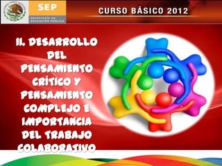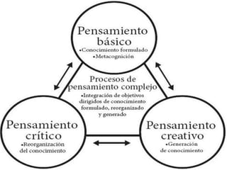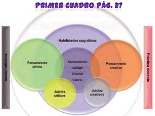 Este documento discute los retos para una nueva práctica educativa basada en el desarrollo del pensamiento crítico y complejo en los estudiantes. Propone que la educación debe fomentar el análisis, la reflexión y la argumentación para permitir que los estudiantes adquieran un criterio autónomo e independiente. También sugiere que los maestros deben reflexionar constantemente sobre su práctica para mejorarla e incorporar enfoques que inviten a una mayor reflexión por parte de los estudiantes.