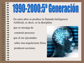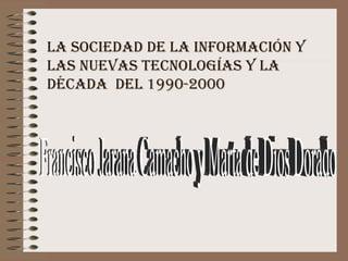 Este documento describe las nuevas tecnologías y la sociedad de la información en la década de 1990-2000. Se produjo la llamada "inteligencia artificial", que construye procesos que permiten a los agentes percibir su entorno, procesar percepciones y actuar. Las invenciones clave de esta década incluyen la tecnología de acceso a Internet, ADSL y el primer satélite de comunicaciones español llamado Hipasat en 1992.